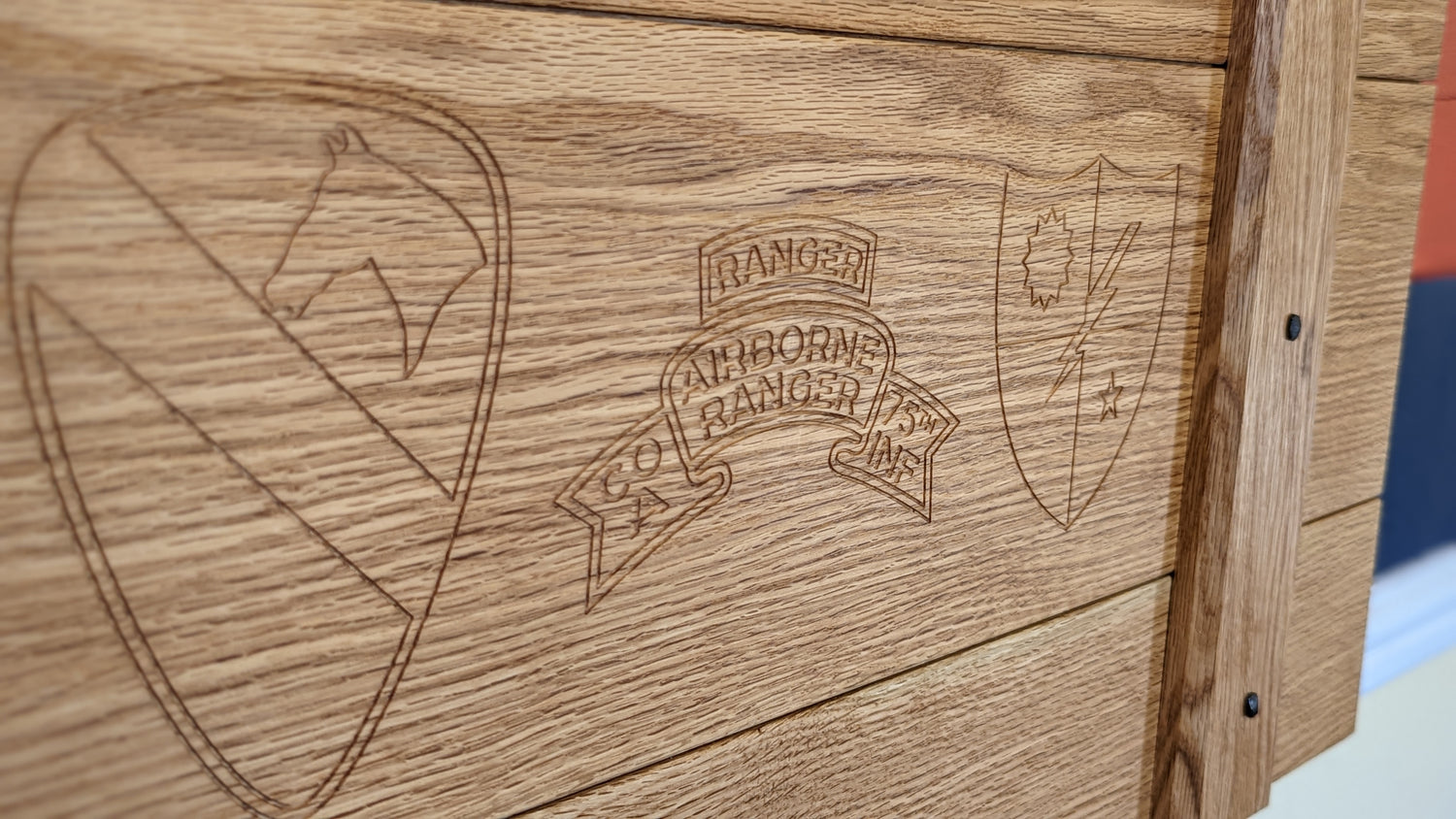 The front of the cabinet can be customized with engravings of your choice. (additional fee)
